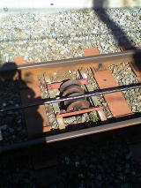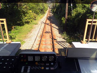 線路と、ケーブルカーの肝となる索。滑車。線路の幅は少し狭い。メーターゲージか、900ミリ程度。ナローのスタンダード、764ミリよりは幅広そうだが。