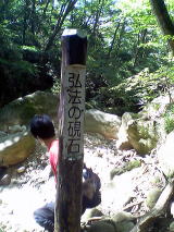ハイキングコースの途中。右写真がその「硯石」と思われる。あのへこんで水が溜まっている所かなぁ?