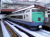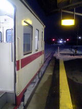 新潟中越地震で運休のあけぼの代走のかもしか91号は583系6連でやってきた。駅の外にいたけど、大急ぎで構内に。臨時かもしかの運転は二ツ井の掲示板で知ってたけど、583が来るとは思わなかった。こんなことならこれに乗るんだった・・・