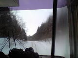 雪の峠へ挑む。キハ58より前面展望、この辺りが有名な龍が森。