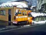 庭先にとまるラッセル車。キャタピラつき。いいなぁこれ。