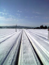 さて、二時間もあるのでどうしようかと思ったが、ここは得意の「一駅散歩」をしようかと。調べたら1駅前の萩生までは2キロ程度なので雪道とはいえ一時間もかからんだろう、というわけで出発。