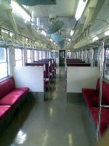 後ろの58は国鉄色。通学の高校生で車内は適度に混んでいる。ロングシート部分に席を取る。