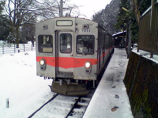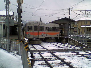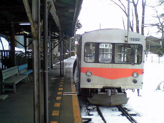 大学前に到着した8001。単線行き止まりでここでの電車入れ替えは出来ない。ホームは二両分あるので続行運転や、後続の電車を入れることは可能。