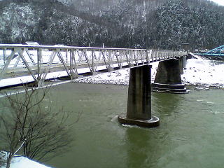 すれ違い電車を。神通川にかかる富山大橋のたもと。