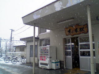 木ノ本駅舎と駅名票。