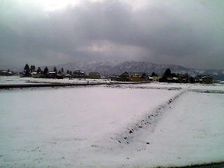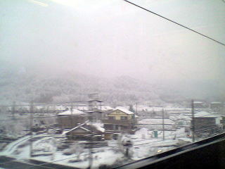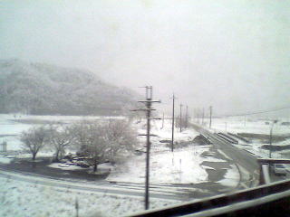 木ノ本過ぎたらますます雪が深くなってきた。考えてみたら、雪の北陸路は「きたぐに」に乗車して以来だな。もう10年近く昔だ。数年前に同じ時期に来たときは全然雪のかけらもなかった。あの時も三月末だった気がするが・・・