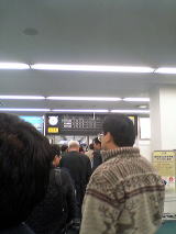 X線検査場の入口が一つしかないので混雑。山形空港もそうだったんだが、ここも出発便ごとに検査場を開放するようだ。最初は1箇所だけだったけど、途中から2箇所目でも検査を開始して少し流れが良くなった。