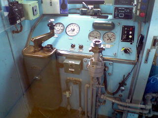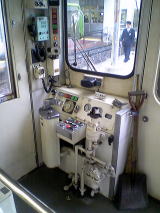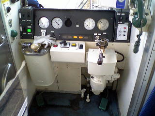 8001の運転台。一見ツーハンドルだけど、左右が一緒に動くだけで機能はワンハンドル。