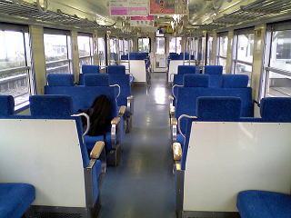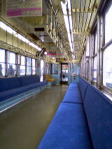 後ろより車輌、モハ610の車内と運転台。