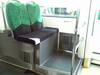 座席はこんな感じで、床がプラットホームと同じレベルなので車椅子利用の方でもそのまま乗り込んでこれる造りになっている。
