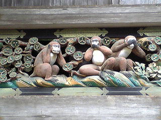 ここに有名な「見ざる、言わざる、聞かざる」の三猿がいる。
