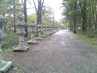 灯篭の立ち並ぶ参道。変なところから入ってきたので、写真も変な順番。普通は写真の奥のほうから歩いてくるもんだ。
