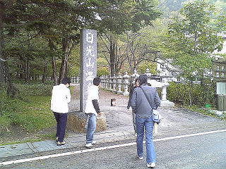 神橋へ。詳しくは今年2月の旅行記。下野・渡良瀬紀行を参照。要は、あの石造りの橋脚が珍しいんだよ、という主旨の説明をしたら、一同それで納得したのか、もういいや、と。