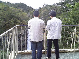 瀧を見る2人。