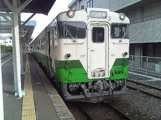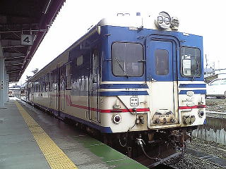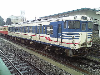 駅舎近くに首都圏色のキハ40が一両鎮座していた。方向幕が「鈍足」とかなっていて面白い。最初は留置車輌かと思ったが、見ての通り、本線とは線路は繋がっていない。