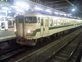大分日が暮れてきた越後湯沢で小休止中のクモハ115−1056。7分停車プチ下車。金沢からのはくたか17号SREの乗り継ぎ旅客を拾って発車。ちなみに、後ろ3両はJR西の681だった。