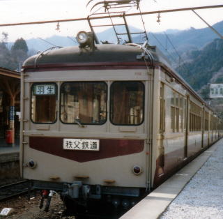 ついでに、現役時代のデハ100の写真があったので載せておこう。デハ102以下の4連で、三峰口の2番ホームに留置中の姿。1986年3月の撮影である。