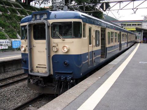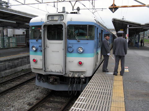 電留線にはスカ色のクモハ115−313以下3連が留置されていた。山スカ良いなぁ・・・