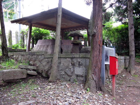境内の片隅に、腰の高さくらいの塚があった。何かな〜としばし立ち止まって考えてみたが、直ぐにそれと思しき物に当たる。