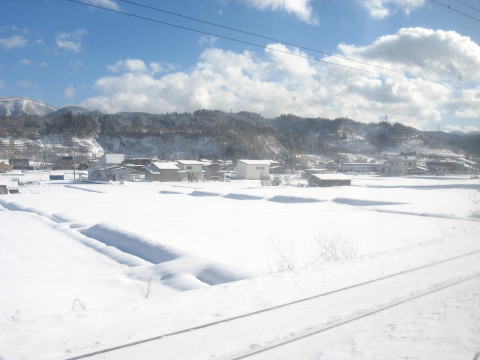 天童、村山で大分降りて、大石田で殆ど下車。また雪が深くなってきた