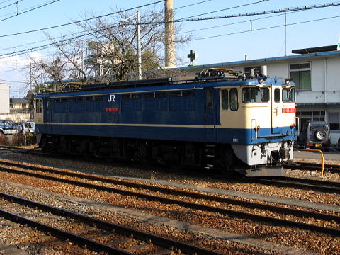 側線にはEF65のPFが留置されていた。赤ナンバーの1077号機だ
