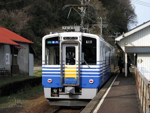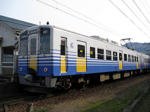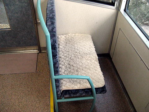 初めて乗ったときは2両編成だったが、現在は3両編成。逆台形の車体断面が面白い。車内は4人がけのBOXシートを主体に一部ロングシート。連結部に通路はあるものの、とても狭く掛員の通行しか出来ない