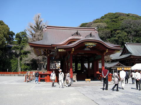 一の鳥居の直ぐ傍に鎮座する「櫛磐間戸神社」。小奇麗な小さな社で「櫛磐間戸命」、「豊磐間戸命」のニ柱を祀っている。神社の入り口を守る神様ということで、「門神さん」と呼ばれ親しまれているそうだ
