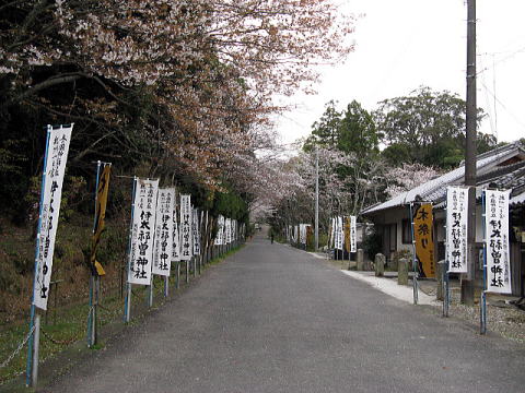 参道では桜が迎えてくれた山陰の桜はまだまだだが、奥の日向の桜は開花も進んでいるようだ。参道とは言っても普通の生活道路で一般車輌も走る。ぼけぼけーっと桜を見ながら歩いてたら、後ろから来た軽ワゴンに轢かれそうになった。てめーらもちったぁ考えろ!!