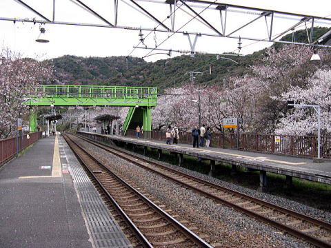 相対ホームの両側に桜が植えられており、それ故に地域の人や鉄道ファンには人気のスポット。すこしここで定点観測してみよう
