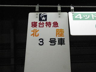 あけぼのの発車を見送ると、ホームの発車案内は次の列車を表示し始めた。23時3分発上越線周りの寝台特急「北陸」