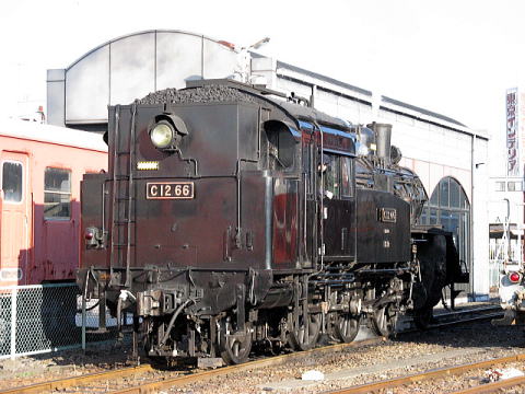 9時半頃に下館に向けて回送発車。下館にはターンテーブルはおろか、機回し線すらないので、C12は下館からの運用に備えて逆向きぶら下がりで回送されてゆく。・・・・・・国旗ないじゃん・・・・・・
