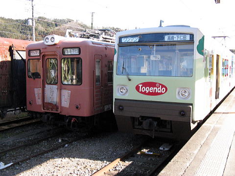 どう見てもさび付いてて、使われていない有蓋車3両。えらい錆び錆びだなぁ・・・とか思ったが、これ鉄製有蓋車なんだって。3両とも同型で、テム8、9、10という。8から付番することは無いと思うので、1〜7も存在したのかしら?上信電鉄は個性的な凸型や箱型の電気機関車を有しており、かつては貨物輸送もさかんに行われていた。このテム達もたくさんの貨物を運んだのだろう。きっと下仁田葱で満載だったはずだ