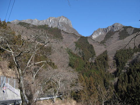 二子山というらしい。見るからに石灰質の岩山だね。しかしデカイなぁ、高いなぁ・・・