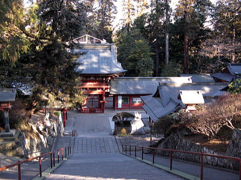 あれだけ上がってきたのに、総門くぐったらまた同じだけ下りだよ・・・。すごい造りだなぁ。一旦上がって、門をくぐってまた下がる。こうゆう特異な形態の神社を「下り参りの宮」とよぶそうだ