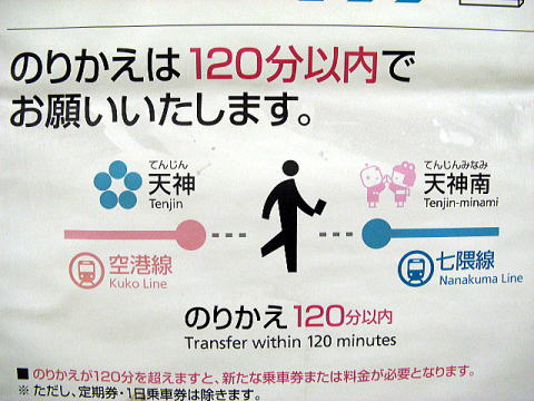120分とか寛大すぎるwww東京なら20分か30分だ。天神で買い物とか食事をする旅客へのサービスなんだろう