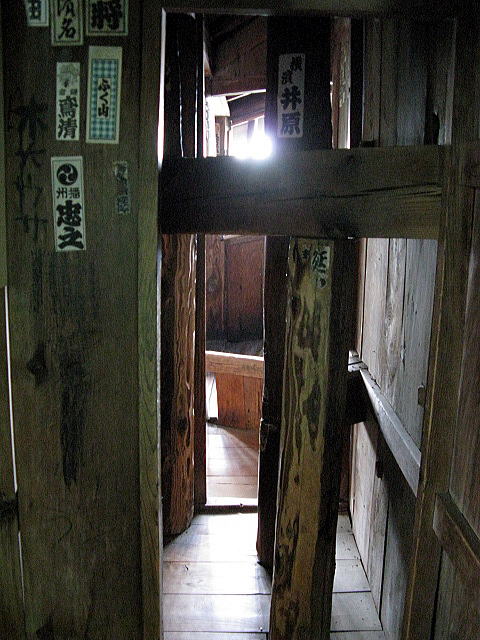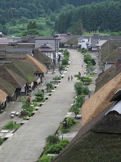 望遠で。こんなに茅葺民家があるけど、1960年代から70年代にかけては普通のトタン屋根に改築されていたところが殆どだと言う。生活水準が飛躍的に上がり、また保守の手間も掛かる茅葺をやめる家が相次いだ。人間と言うものはいったん便利になると、その生活を捨てることは難しい。この大内宿も往時の姿に戻し保存することに住民たちは当初は否定的だったという。我々観光客は一日や二日来て「良いね良いね」といって帰ってゆくけれど、ここに住まう人たちにとっては毎日がこの暮らしなのである。当然補助等はあるにせよ、この景観を維持するのには相応以上の努力、配慮がなされている。各戸に消火栓設備を設けたり、消防団の構成も厚い。子供の花火に至っては8/15に一日しか許可されていないそうだ。夏は暑く、冬は豪雪。けして暮らしやすい環境ではない。今の最新の住宅に比べて住環境は格段に劣るであろうこの民家郡を維持してゆくのはなみなみんらぬ努力では成しえない。でも、やっぱりこの土地を愛しているが故なんだろうな・・・
