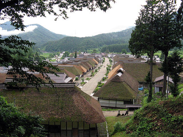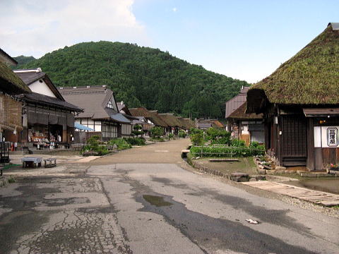広い街道筋の両側に茅葺の民家が整然と並んでいる