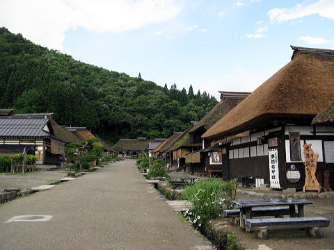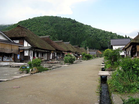 雨が降った後、というだけではないだろうが、気温はぐっと下がって冷涼。20度少しくらいだろうか。九十九折れの峠を越えて、ダム湖のほとりを越えると、この旅、当初の目的地である大内宿に到着
