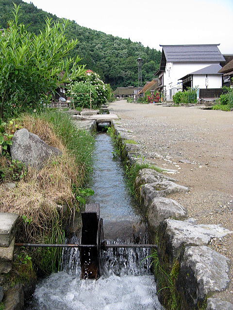 道の両側には水路が設けられており、生活用水の一部として機能している。元々は街道中央を流れていたものだが、後に街道の両側に移設されている