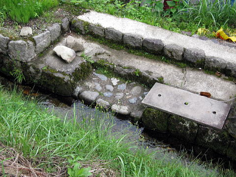 昔ながらの洗い場。真新しいたわしが置いてあるところを見ると現役だろうか。畑からもぎたての野菜を取ってきてさ、山からの冷涼な湧水で洗ってそのままかぶりつく。贅沢だなぁ・・・