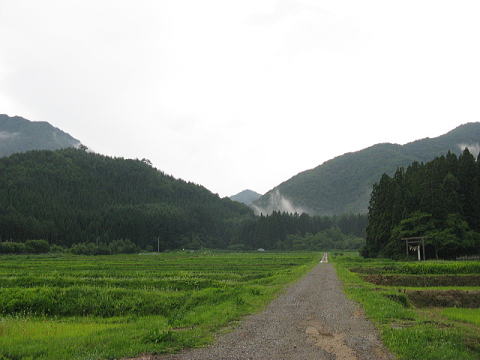 大体5本2本くらいは信号かかれていない中、右折地点を割り出し、国道401号へ。只見線、会津鉄道を越えて、清水向で県道77号に入る。時折大粒の雨が落ちてくるが、全く持って期待はずれの降り方である