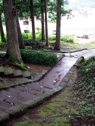 宿場の一番奥までやってきた。上に登る石段を発見。足元に注意しながら登ってゆくと子安堂の境内に。そのまま山に張り付いた道を進んでゆく