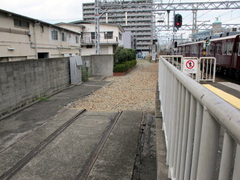 宝塚線のホーム脇にこんな引込み線が残っていた。ご覧のとおり、本線とは繋がっていない