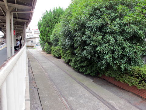 舗装されているが、レールの敷設状況から現役時代から併用軌道だったようだ