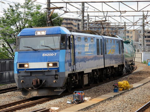 たった1両のタキを従えて鶴見駅方からやってきたEH200−7。根岸からの5160レ。区間も短く、まだ需要も細いのだろう。EH200には軽すぎる荷だ