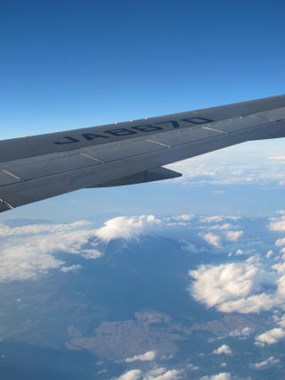 富士山を南側から見下ろして大阪へとフライトを続ける。関東は天候も良かったが、西の方は少し心配