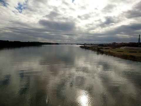 馬入川を渡る。天気は回復するそうだが、まだまだ雲が多い