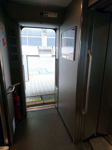混雑しているし、たったの1駅8分なのでデッキでもう良いやw