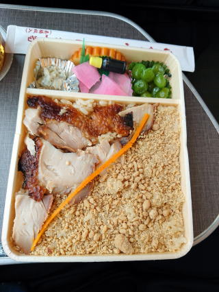 ドリンクオーダーと共に乗客一人一人に行き先を尋ねてよろしくお願いしますと頭を下げるアテンダントさん。乗車時間の長短によって、サービスの時間的優先度を考えているんだろうな。まずいないだろうけど、横浜で下車するなら至急のドリンクサービスが必要になる